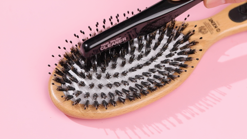 如果有发丝卡在梳子里,用清洁刷随便刮几下,头发和灰尘都能清理的干干净净!▼